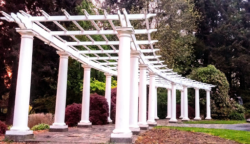Urban park featuring a woodland area, a lake, walking trail & dog park, plus a historic pergola.
